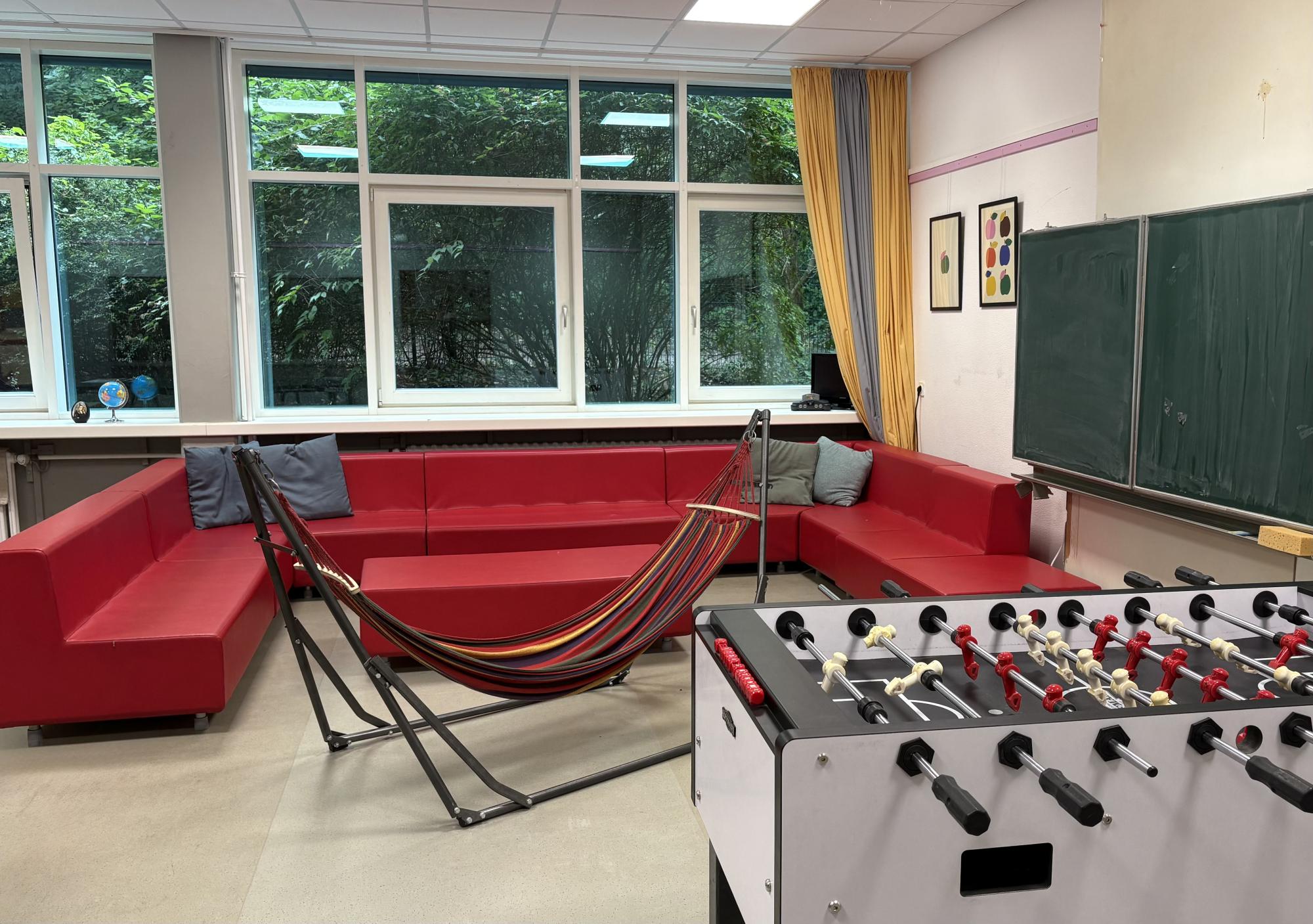 Im OGTS-Freizeitraum erwartet die Schüler*innen eine gemütliche Sitzgruppe, ein Kicker und eine Tischtennisplatte. Außerdem bieten wir eine Wii-Konsole mit offline Mehrspielerspielen und Bewegungsspielen an.